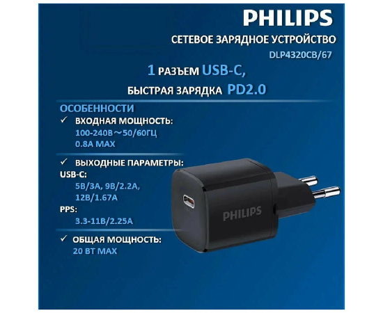 СЗУ Philips DLP4320CB/67 Mini Gan PD20W черный