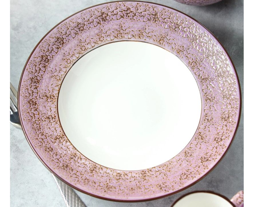 Цвет тарелки напоминает акварельный рисунок: нежнейший и воздушный, он словно растворяется в белом фарфоре, оставляя за собой легкий шлейф эмоций. Оттенок безмятежности и чувственности, который навевает мечтательные настроения.