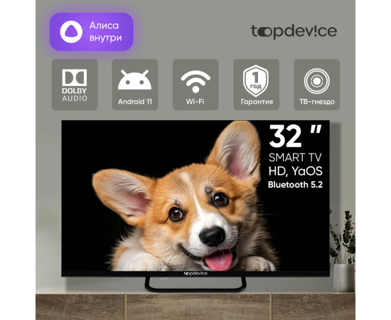 32" Телевизор TopDevice TDTV32CS03H_BK черный 1366x768, HD, 60 Гц, Wi-Fi, Smart YaOS
