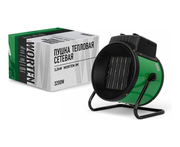 Тепловая пушка WORTEN КА-90000350 электрическая сетевая 3,2kW, керамический нагревательный элемент