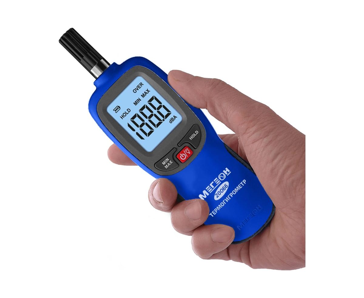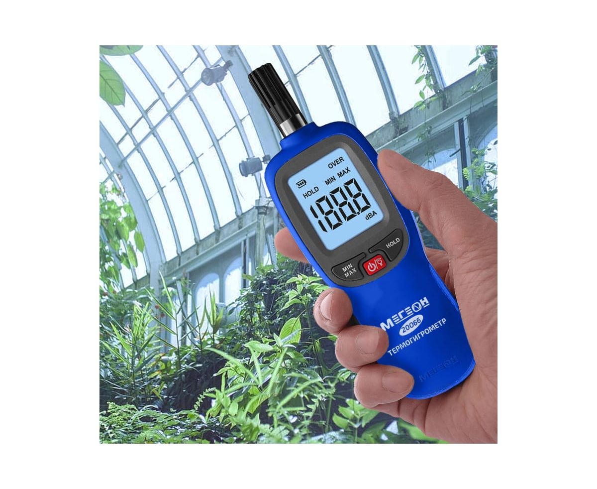 МЕГЕОН 20066 – новинка в модельном ряду цифровых высокочувствительных термогигрометров. Представленный прибор внесен в ГРСИ по номером 89786-23 и предназначен для быстрого определения параметров температуры и влажности с высокой точностью в помещениях и на открытом пространстве. Помимо этого с его помощью можно зафиксировать максимальные и минимальные значения измеренных данных. Преимуществом также является функция записи результатов в память емкостью 999 ячеек. Измеритель получил современный дизайн и компактные размеры. Модель имеет эргономичную форму корпуса, удобное расположение органов управления на передней панели и большой ЖК- дисплей с яркой светодиодной подсветкой. На заднее стенке предусмотрено монтажное отверстие для установки на штатив, благодаря чему достигается максимальное удобство при эксплуатации.