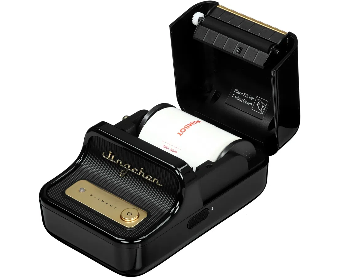 Термопринтер, стартовый рулон с этикетками, кабель для зарядки принтера.