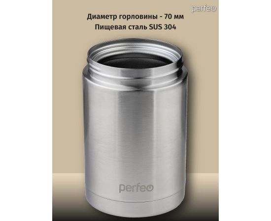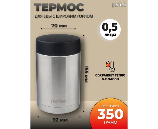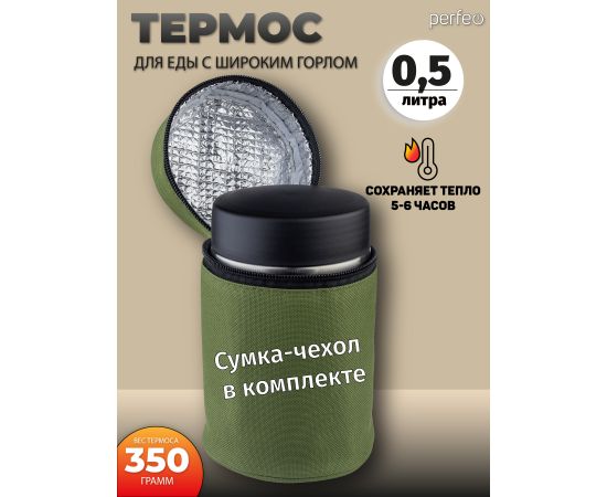 Термос для еды PERFEO с широким горлом, сумкой, объем 0,5 л., нержавеющая сталь (PF_E1381)
