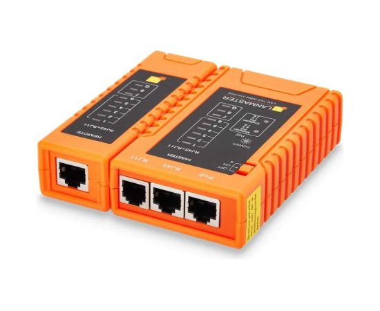 Кабельный тестер предназначен для специалистов по монтажу коммуникационных кабелей. Прибор позволяет тестировать кабели типа «витая пара» (UTP и STP), оконцованные стандартными коннекторами RJ-45. Тестер прост в использовании и состоит из передатчика (MASTER) и приемника (REMOTE), которые подключаются с двух сторон к проверяемой линии. Позволяет определить наиболее часто встречающиеся кабельные повреждения: перепутанные пары, обрыв и замыкание. А также имеет функцию определения типа питания PoE (Endspan или Midspan) согласно стандарту 802.3af/802.3at.