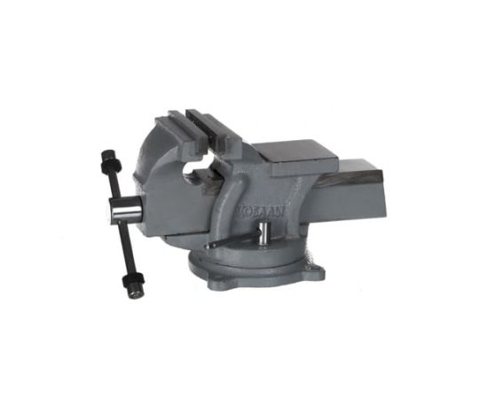 Тиски слесарные поворотные КОБАЛЬТ 248-962 стальные, ширина губок 100мм, захват 100мм, 7кг, наковальня, коробка