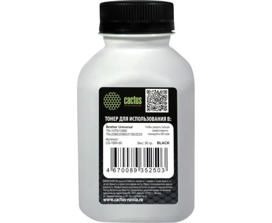 Тонер Cactus CS-TBR-50 черный флакон 50гр для принтера Brother Universal TN-1075/1095/TN-2080/2085/2135/2235
