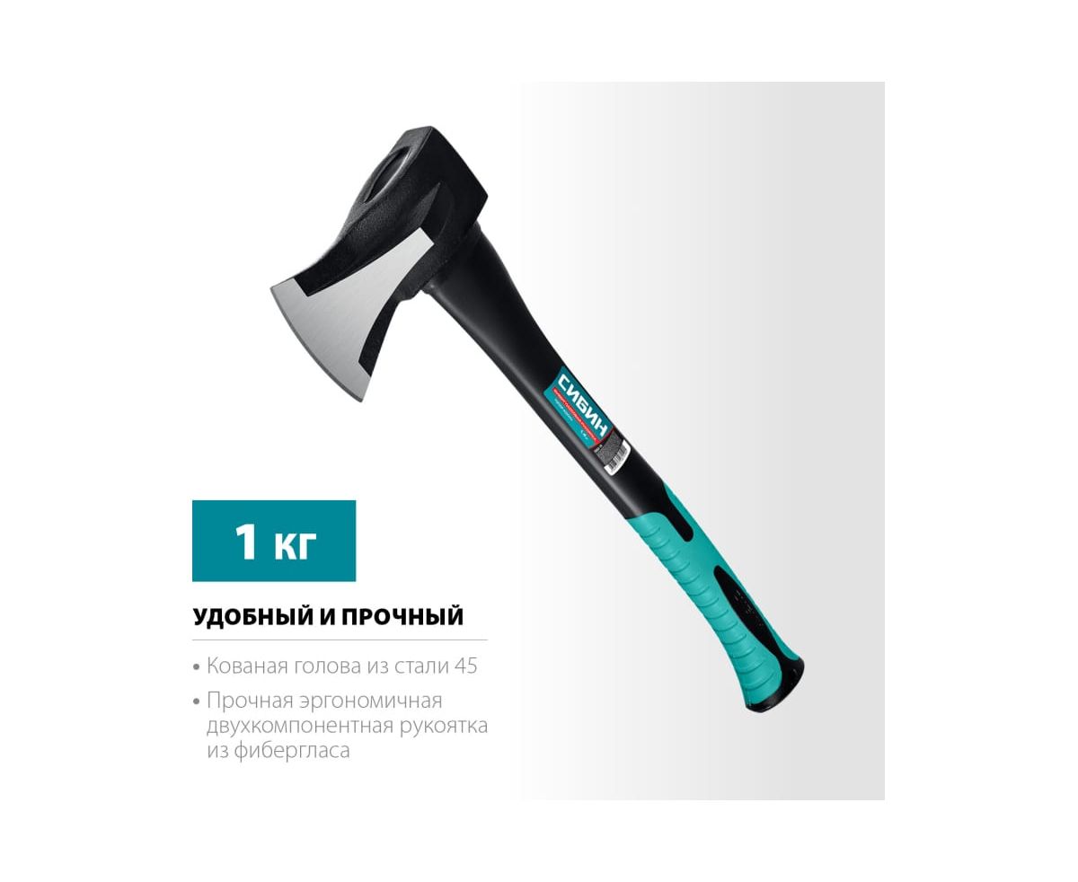 Топор-колун СИБИН Ушастый Фибергласс 1000/1400 г, 450 мм 2083-10 - надежный кованый инструмент для работы с древесиной. Предназначен для рубки, колки и тески древесины.