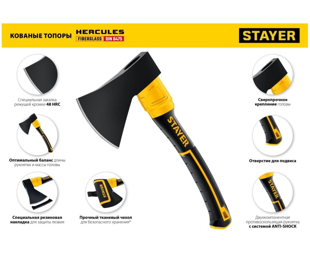 Топор STAYER Fiberglass (2062-06P z02) кованый, с чехлом