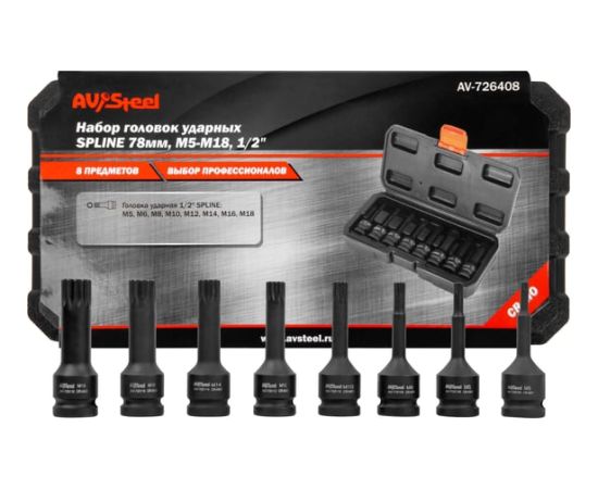 Торцевые головки Av Steel AV-726408 в компл.:8 предметов