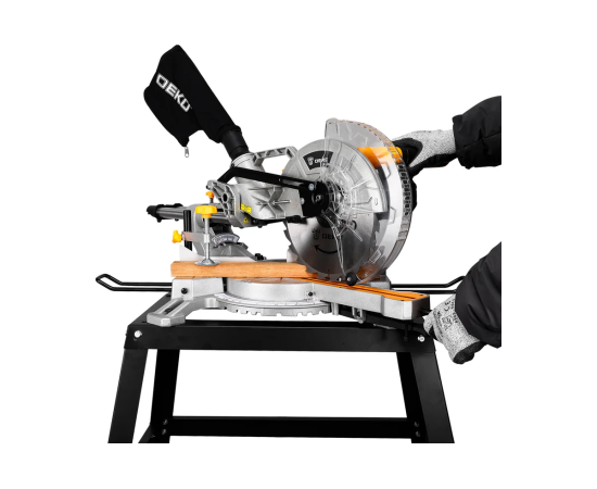 Торцовочная пила DEKO DKMS2100-255 со станиной предназначена для прямого, косого, под наклоном и комбинированного пиления заготовок из древесины и ее производных (в том числе и с пластиковыми покрытиями), тонкого алюминиевого профиля, при установке соответствующего диска.