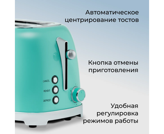 автоматическое поднятие тостов, автоматическое центрирование тостов, кнопка отмены, регулировка степени обжаривания