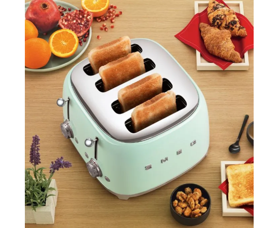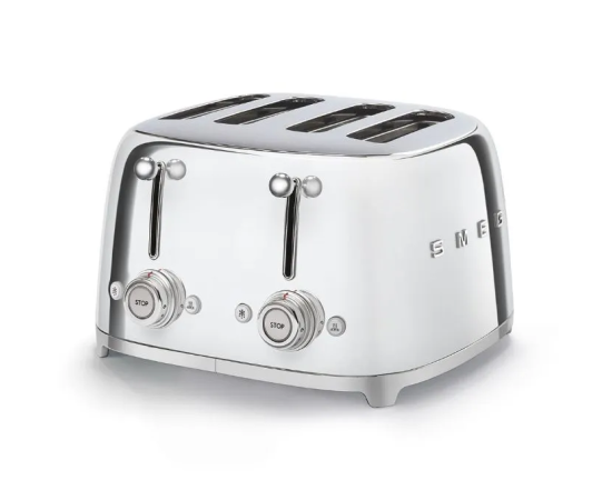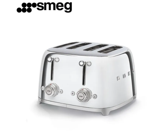Тостер SMEG TSF03SSEU на 4 ломтика Функции, подогрев, размораживание, багель, 6 уровней поджаривания, Съемный поддон для крошек, хром