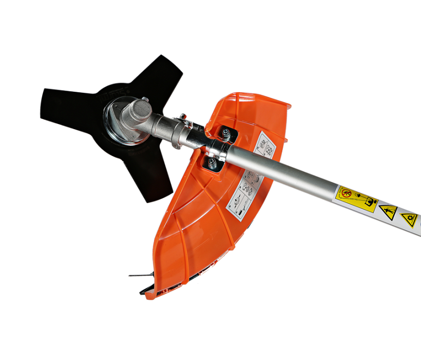Универсальный защитный кожух подходит для использования с ножом-косой, которая облегчает срезание жестких зарослей, или кордовой головкой для травы. Заменить оснастку при этом можно просто и безопасно. Система легкого старта отвечает за бесперебойный запуск мотора без чрезмерного приложения усилий. Праймер подкачки топлива облегчает включение двигателя в сложных условиях. Наличие возвратного механизма стартера постоянно поддерживает инструмент в готовом к работе состоянии. Это обусловлено тем, что он автоматически приводит его в стартовое положение для быстрого последующего запуска.