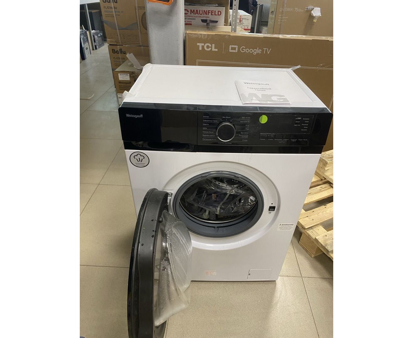 УЦ Стиральная машина Weissgauff WM 45127 DC Inverter Steam (плохая упаковка, бу, нет документации, ремонт контактной группы)