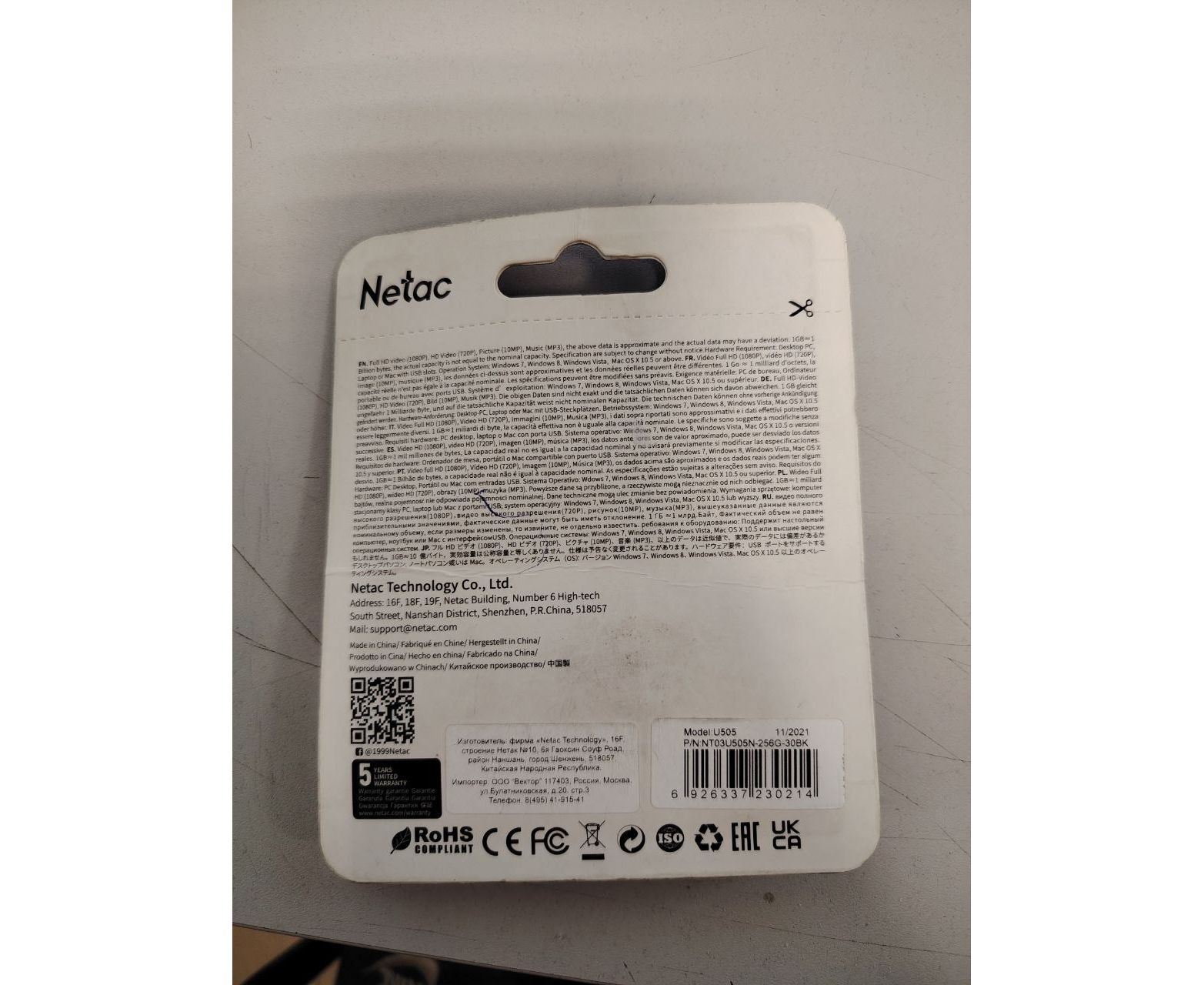 УЦ USB-флешка Netac U505 (NT03U505N-256G-30BK) 256GB, USB3.0 (Плохая упаковка)