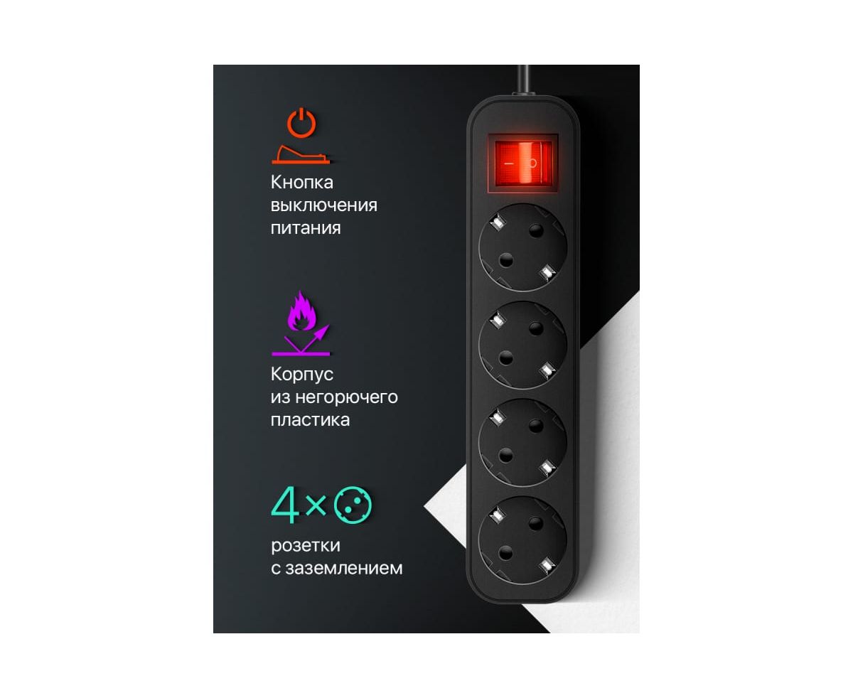 Сетевой фильтр DEFENDER G450 5.0 м, 4 розетки (99339)