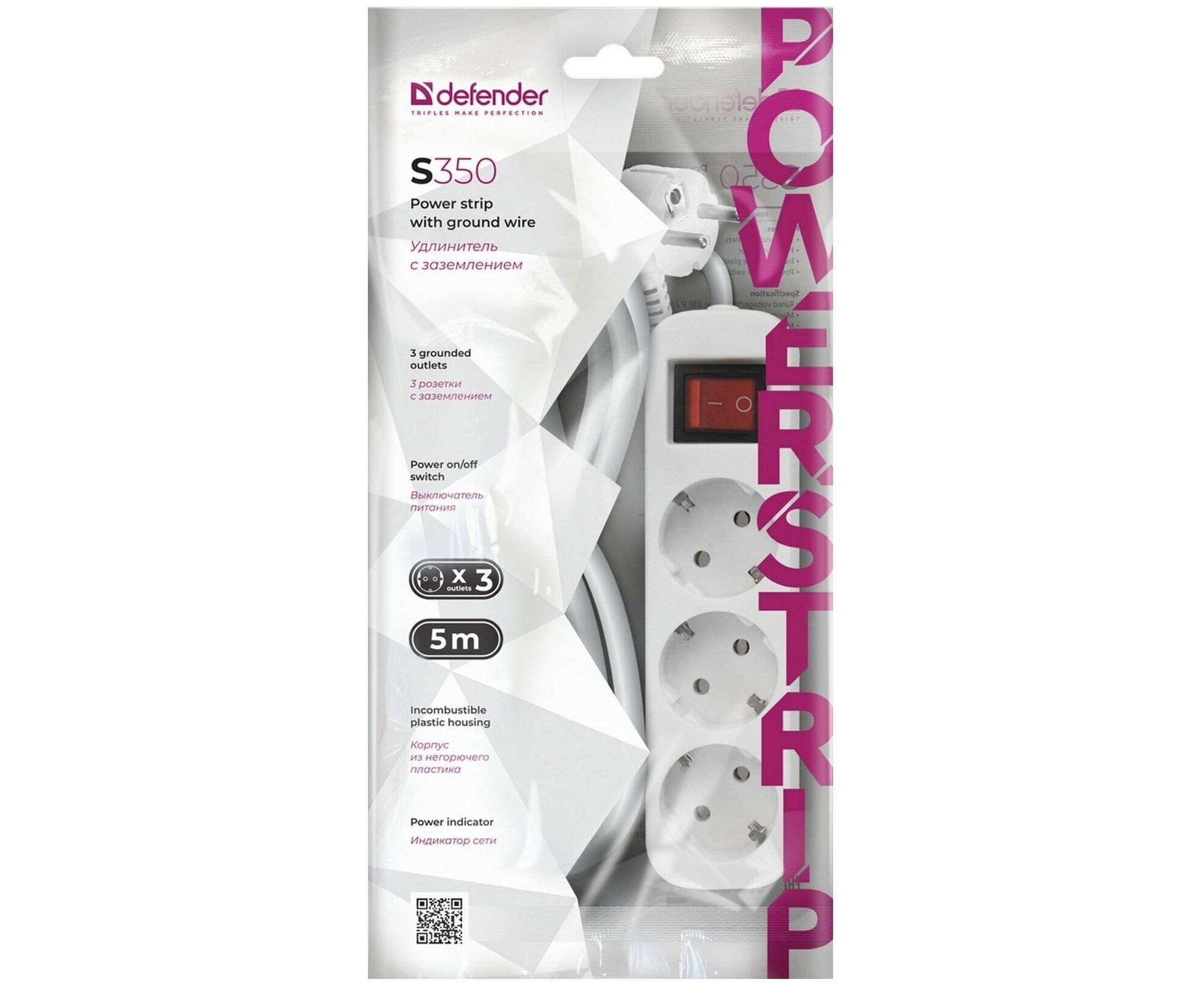 Удлинитель DEFENDER S350 (99235) 5.0 м, 3 розетки