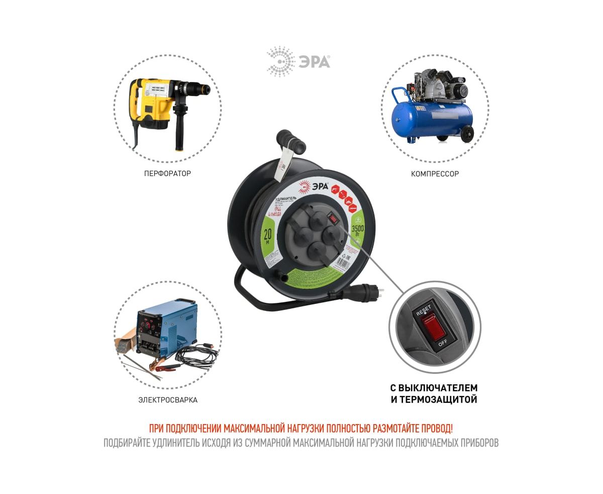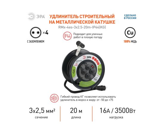 Удлинитель ЭРА RMx-4es-3x2.5-20m-IP44(KG) (Б0043057) 4 гн 20м