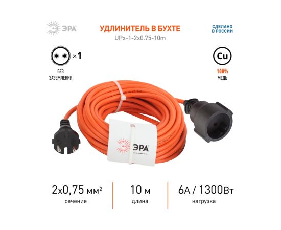 Удлинитель ЭРА UPx-1-2x0.75-10m-IP44 (Б0043036) 1 гн 10м