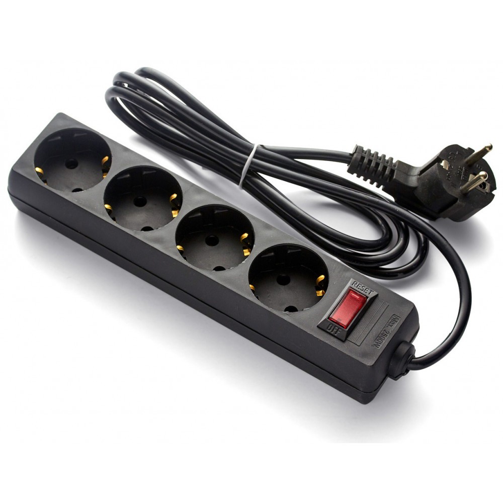 сетевой удлинитель, 4 розетки, 3 м, чёрный