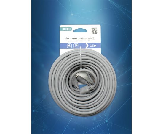 Удлинитель питания DC 2.1x5.5 с патч-кордом, 15 метров, серый