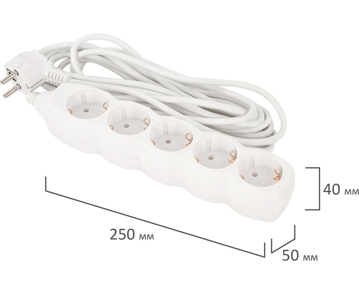 Удлинитель сетевой SONNEN U-155G (511437) 5 розеток, c заземлением, 10А, 5м, белый