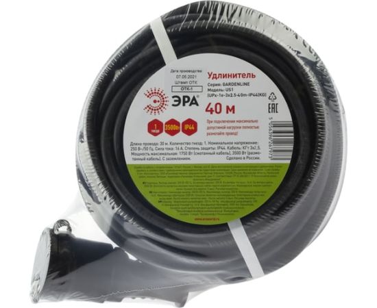 Удлинитель силовой Эра UPx-1e-3x2,5-40m-IP44(KG) (Б0050865) розеток 1шт, 3x2.5 кв.мм, 16A, 40м, КГ, без катушки, черный
