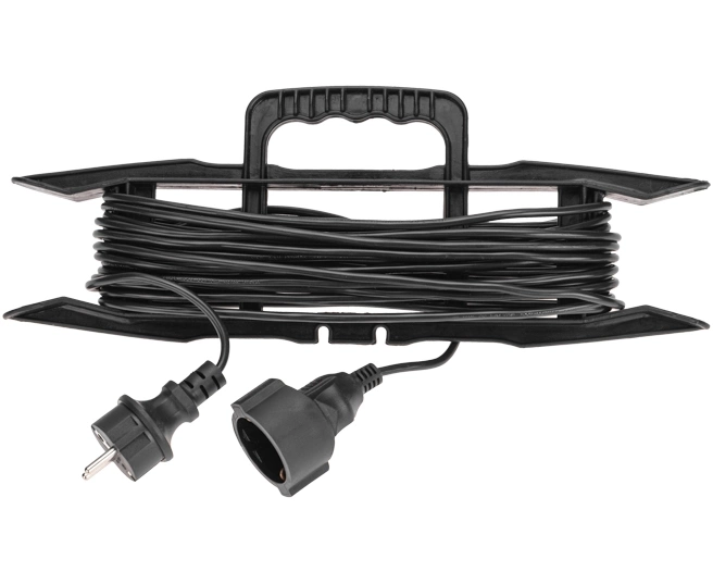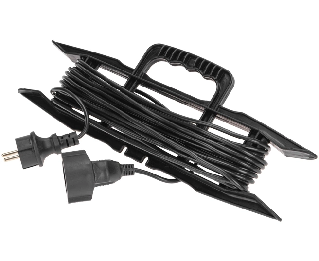 Конструкция предусматривает наличие одного гнезда. Устройство обладает высокой надежностью и безопасностью, благодаря использованию качественных материалов. Для удобства транспортировки и хранения шнур поставляется на рамке.