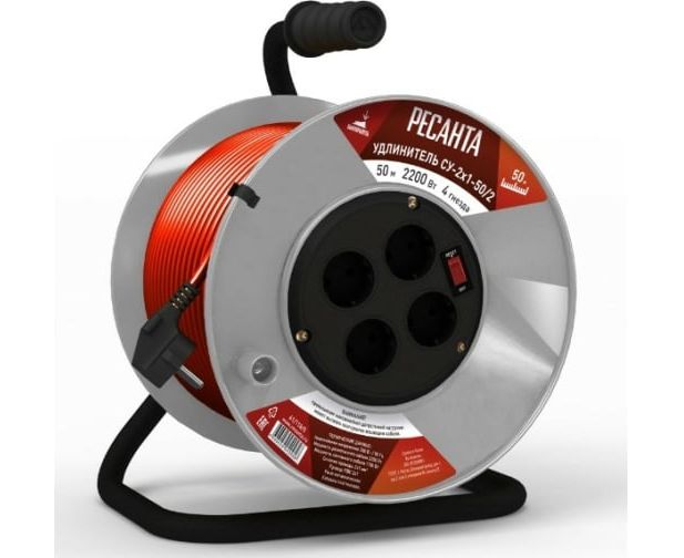 Удлинитель силовой Ресанта СУ-2х1-50/2 на катушке, с выкл., 4 розетки 61/118/5