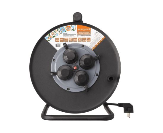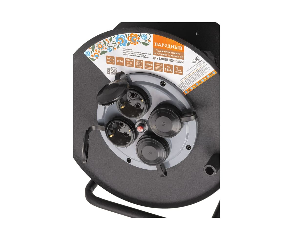Удлинитель силовой TDM SQ1307-0172 УХз16-004 метал. катушка, А3, 4места IP44/50м КГ 4000Вт Народный