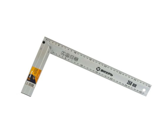 Литой алюминиевый угольник ВИХРЬ применяется для разметки и проверки взаимной перпендикулярности поверхностей конструкций и деталей. Основание (колодка) и линейка - литые, под углом 90°. Есть двухсторонняя измерительная шкала. длина наруж.: 35 см, длина внутр.: 31 см. Особенности: