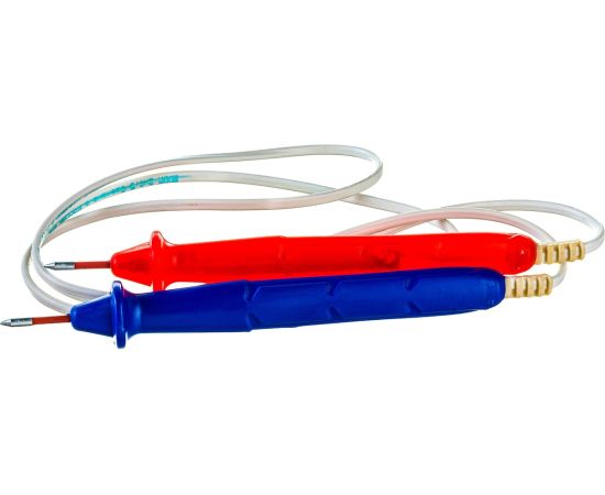 Указатель низкого напряжения Антиток с функцией фазировки до 1кВ ПИН 50-1000В 157719 выполнен в двухполюсном исполнении и состоит из двух корпусов, содержащих элементы электрической схемы. Корпуса указателя соединены между собой гибким проводом. Электрическая схема двухполюсного указателя напряжения имеет контакты-наконечники и неоновой лампы в корпусе изделия, обеспечивающая визуальную индикацию наличия напряжения. Определение наличия напряжения следует производить путем касания контактами-наконечниками токоведущих частей. Свечение неоновой лампы происходит при протекании активного тока.