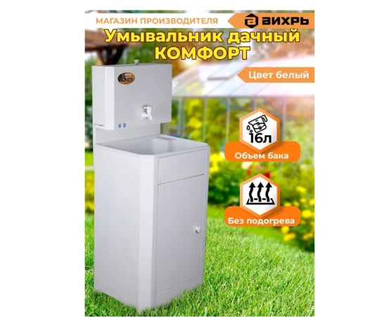 Умывальник дачный Вихрь КОМФОРТ без подогрева, пластиковая мойка, белый (74/4/10)