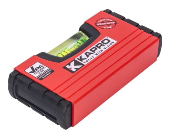 Уровень мини KAPRO 246 обладает небольшими размерами, что упрощает использование инструмента в стесненных условиях или на поверхностях небольших габаритов. Амортизирующие торцевые заглушки увеличивают срок службы инструмента.