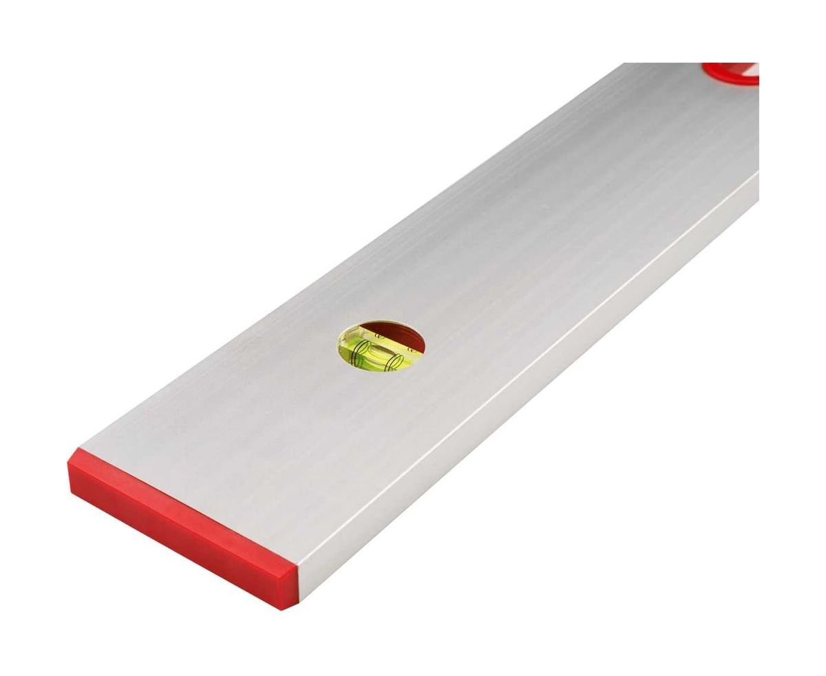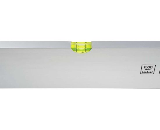Уровень изготовлен из легкого, но прочного алюминиевого сплава, и оснащен двумя колбами (точность 1 мм/м), который расположены перпендикулярно друг другу. Рабочая длина составляет 1500 мм, благодаря чему правилом удобно пользоваться в коридорах, проходах и других достаточно узких пространствах. Кроме того, оптимальная длина также упрощает переноску оп объекту и транспортировку к месту проведения работ.