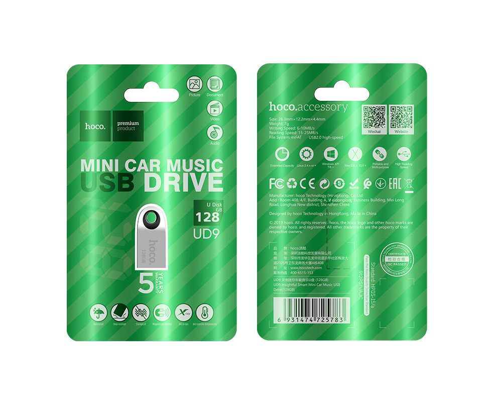 Flash Drive HOCO UD9 128G USB2.0 Insightful Smart Mini Car Music USB Drive