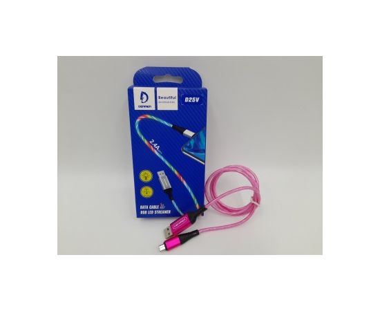 USB-кабель Denmen D25V, micro USB, силикон, 1.0 м, круглый, с подсветкой, зеленый, фирменная упаковка