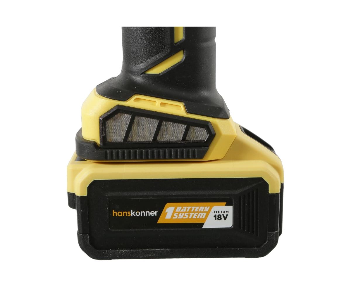 11.ONE BATTERY SYSTEM, аккумуляторная батарея с унифицированным присоединением ко всем бесщёточным электроинструментам марки Hanskonner