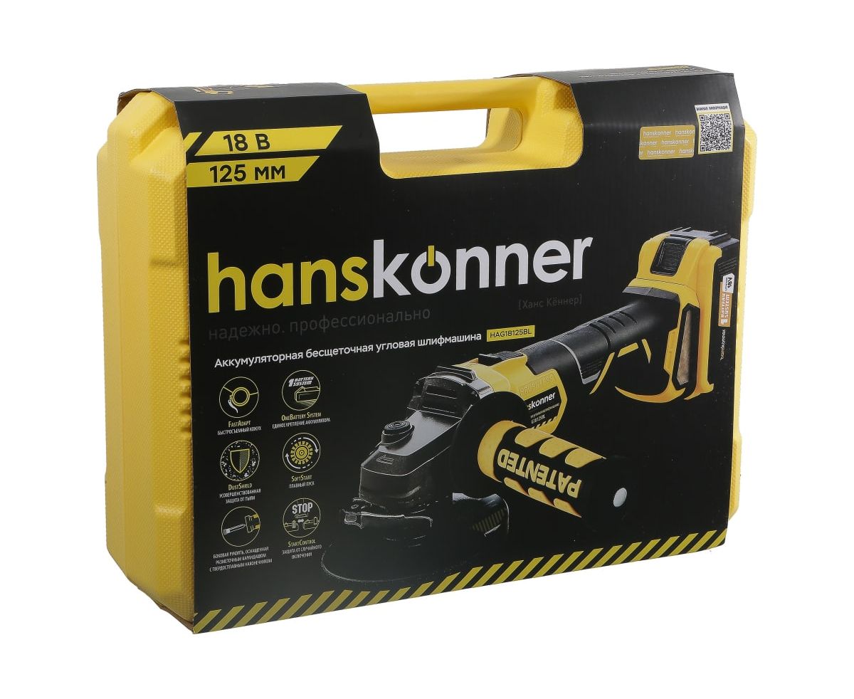 УШМ Hanskonner HAG18125BL аккумуляторная (с АКБ 2 шт)
