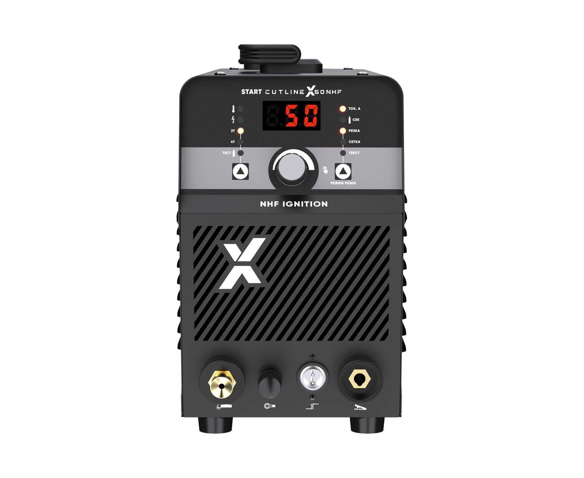 START CutLine X50 NHF - Легкий и компактный источник с пневмоподжигом - подходит для воздушно плазменной резки углеродистой стали, нержавеющей стали, алюминиевых сплавов, меди и других цветных металлов. Источник универсальный – может быть использован как для ручной резки так и в паре с ЧПУ столом.