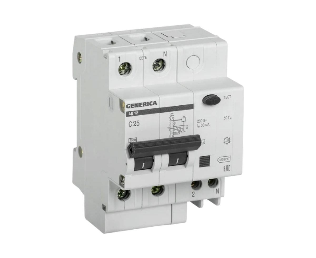 УЗО GENERICA АД12 (MAD15-2-025-C-030) 2Р 25А 30мА