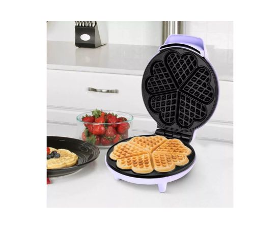 Вафельница выполнена в нежном лавандовом оттенке. Подойдёт в подарок и впишется в любой интерьер, украсив кухню. Прибор оснащен индикаторами питания и нагрева, которые сочетаются с цветом корпуса.