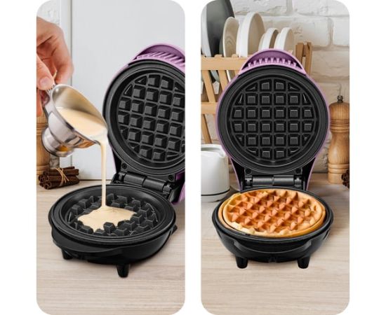 С помощью электрической вафельницы КТ-3685 вы сможете печь круглые бельгийские вафли. Вафельница рассчитана на приготовление 1 вафли за один раз. Компактный размер вафельницы позволяет экономить место на кухне. Также небольшой размер вафельницы облегчает уход за прибором, поэтому вы сможете готовить вафли с удовольствием даже на завтрак, когда времени на приготовление и уборку мало.