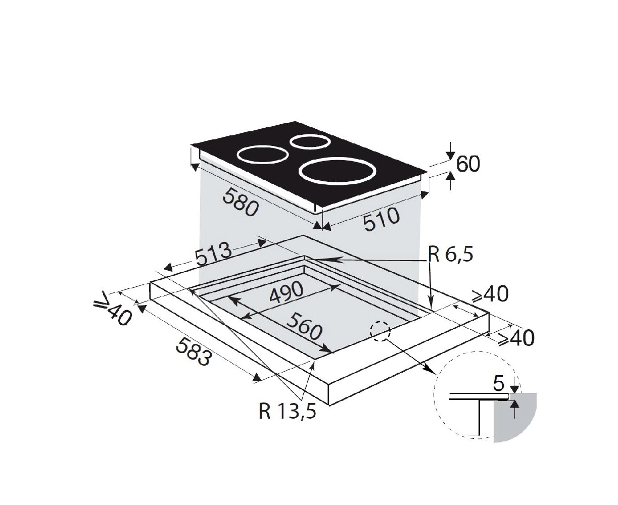 Ширина встраивания, см