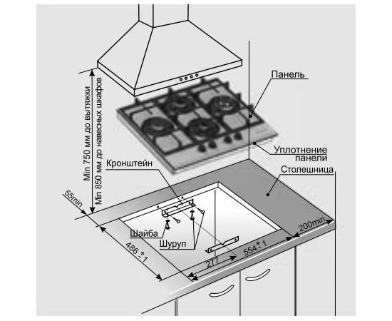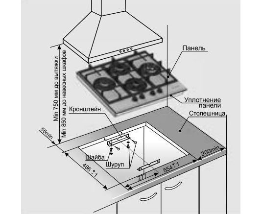 Размеры ниши для встраивания (ШхГ) 554 х 486 мм