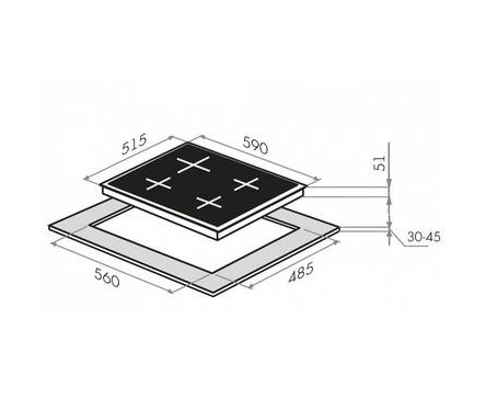 Глубина варочной поверхности, см: 51.5