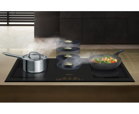 Дополнительные функции ▪ Функция скоростного интенсивного нагрева каждого поля POWER ▪ Индукционные нагревательные поля, саморегулируемые под размер посуды ▪ Cистема автоматического отключения Safety Guard