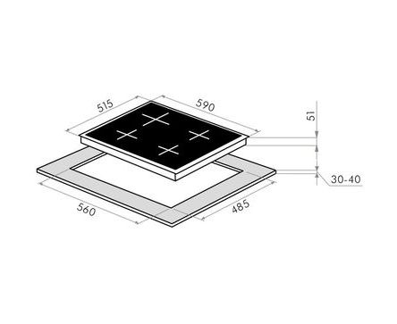 Глубина варочной поверхности, см: 51.5