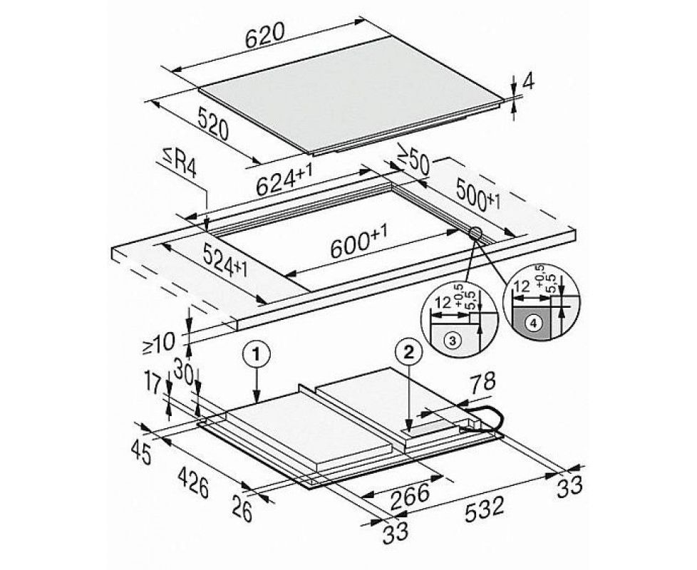 Материал панели конфорок стеклокерамика