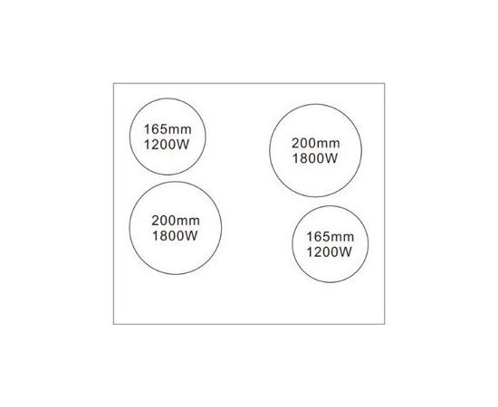 Правая дальняя конфорка: мощность 1800 Вт размер200 мм